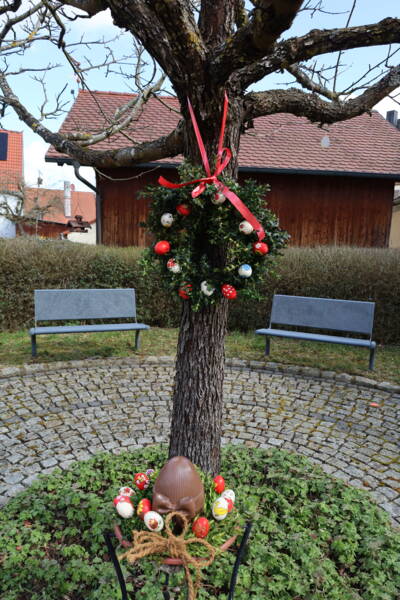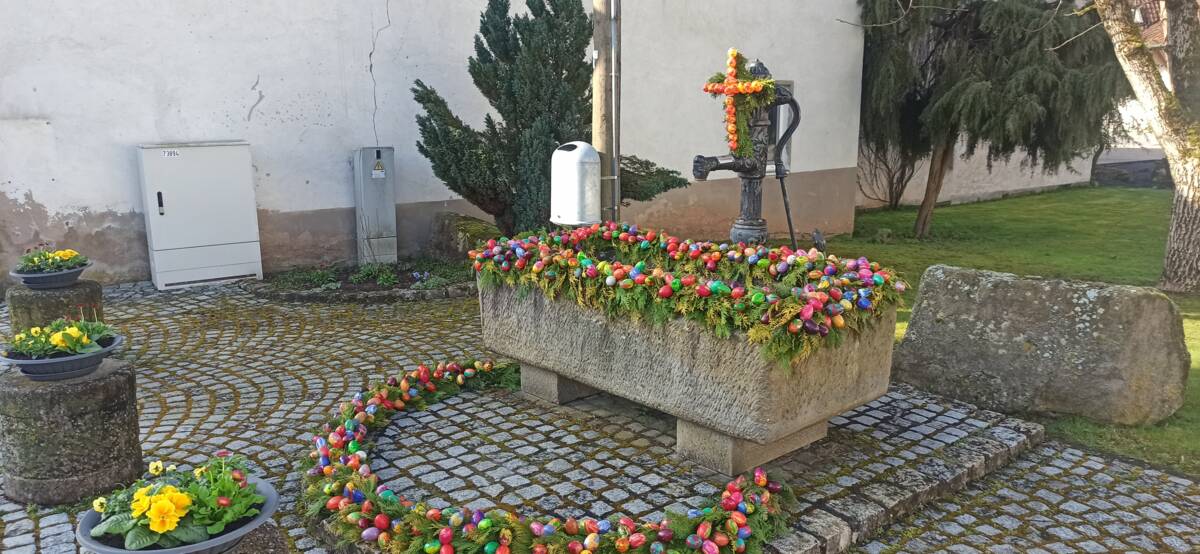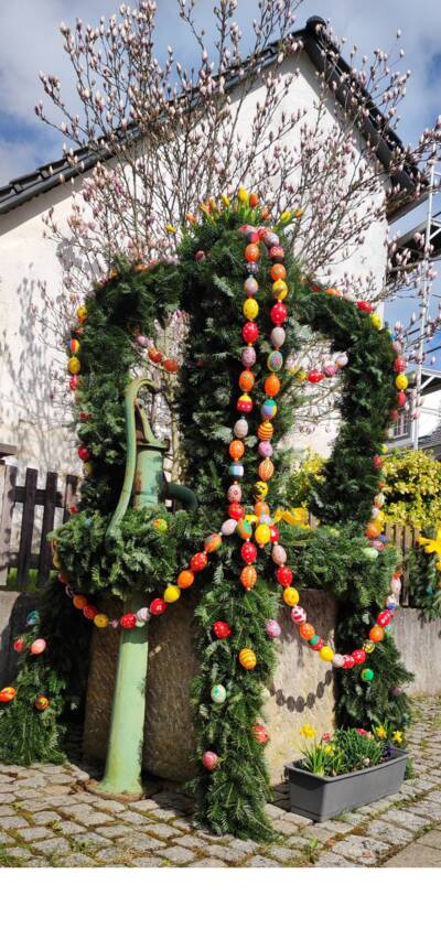 Herzlicher Dank geht auch 2026 wieder an alle Ehrenamtlichen, die die Osterbrunnen in der Gemeinde Stegaurach wieder so wunderschön geschmückt haben. Bunte Eier an den Brunnen finden Sie bei einem österlichen Ausflug durch die Gemeindeteile in Höfen, Waizendorf, Unteraurach und Stegaurach. In Kreuzschuh wurde in diesem Jahr wieder eine Osterkrone aufwändig gebunden. In Stegaurach auf dem Luigi-Padovese-Platz haben die Landfrauen wieder eine besonders große Osterkrone mit bunten, selbstgemalten Eiern angebracht (Foto oben). Die Mitarbeiter des Bauhofes waren gerne beim Aufstellen behilflich. Wer Lust hat, die Osterbrunnen-Teams zu verstärken, möchte sich gerne melden! Verstärkung wird ständig gesucht, damit diese schöne Tradition weiterleben kann.
