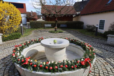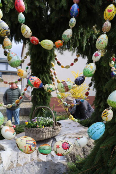Herzlicher Dank geht auch 2026 wieder an alle Ehrenamtlichen, die die Osterbrunnen in der Gemeinde Stegaurach wieder so wunderschön geschmückt haben. Bunte Eier an den Brunnen finden Sie bei einem österlichen Ausflug durch die Gemeindeteile in Höfen, Waizendorf, Unteraurach und Stegaurach. In Kreuzschuh wurde in diesem Jahr wieder eine Osterkrone aufwändig gebunden. In Stegaurach auf dem Luigi-Padovese-Platz haben die Landfrauen wieder eine besonders große Osterkrone mit bunten, selbstgemalten Eiern angebracht (Foto oben). Die Mitarbeiter des Bauhofes waren gerne beim Aufstellen behilflich. Wer Lust hat, die Osterbrunnen-Teams zu verstärken, möchte sich gerne melden! Verstärkung wird ständig gesucht, damit diese schöne Tradition weiterleben kann.