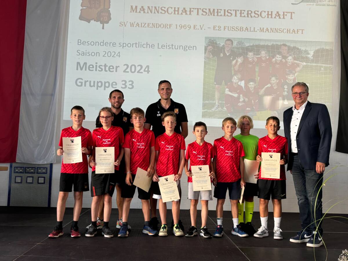 E2-Fußballmannschaft des SV Waizendorf (Trainern Oliver Becher und Stefan Reck): Meister in der Saison 2024 in der Gruppe 33
